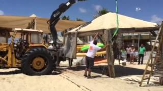 ואכן בית המשפט הכריע והיום בצהריים המבנים של בית הספר לגלישה "סרף סנטר", נהרסו. "עמדתי על החוף ולא האמנתי למראה עיניי", אמר רועי ברדין, מבעלי מועדון "סרף סנטר". לפני כשלוש שנים, כשהקמנו את המקום הזה, לא ידענו שהוא לא חוקי. גילינו את זה רק כשנה לאחר מכן, וישר ניגשנו למכרז, כדי שהכול יהיה חוקי. קיבלנו אישורים, שילמנו 41 אלף שקלים לעירייה, אבל אז בעלי המסעדה הבינו, שהם יוכלו להוציא מאתנו כספים, רק באמצעות צווי הריסה.