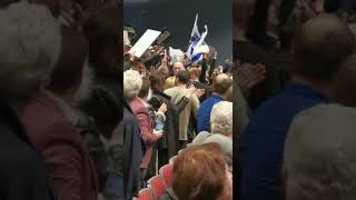 בדרכם החוצה זכו הפעילים לגידופים מצד חלק מהנוכחים במקום, שגם קרעו להם את השלטים.