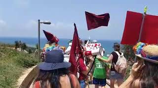 שעה קלה לאחר מכן הובילו פעילי תנועת איג"י (ארגון נוער גאה) את החוגגים בשירה וריקודים. מצוידים ברשמקול הנהיגו הצועדים שורה של מסרים מלווים בפזמונים קליטים בנוסח "העם דורש צדק חוקתי – להומו, ללסבית, לטרנס וגם לבי", "צאו מהמרפסת, הקהילה כועסת", "גם לטרנס וגם לסיס, ביטחון הוא הבסיס" ובאווירת החום הכבד והלחות הוסיפו בחיוך "גם בשמש גם כשחם, אני אוהבת גם וגם".